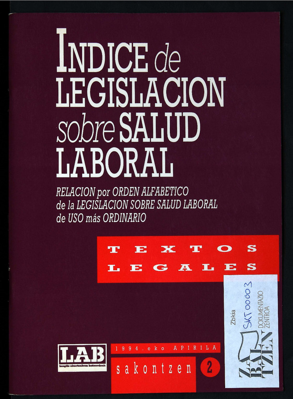 SAKONTZEN 2,TEXTU LEGALAK: Índice de legislación sobre salud laboral
