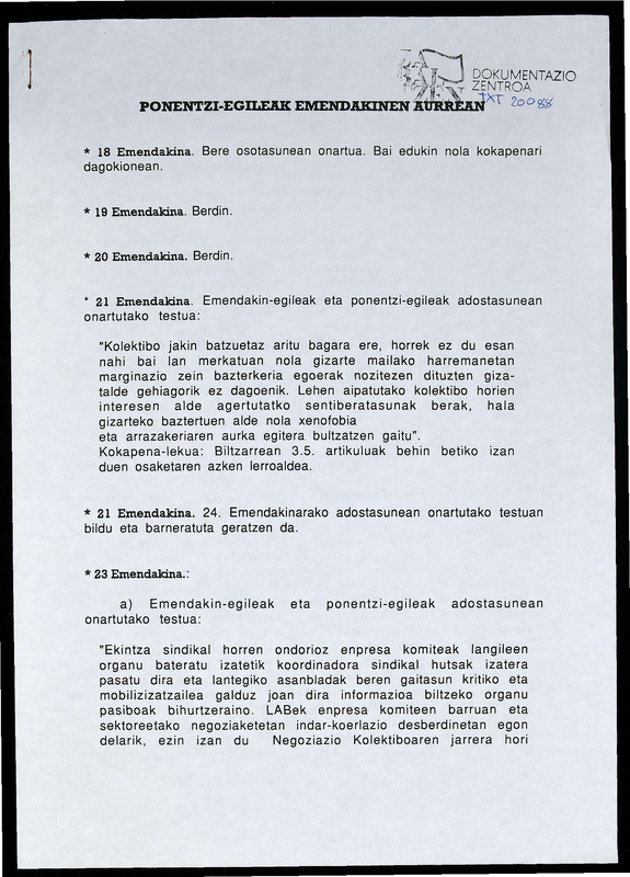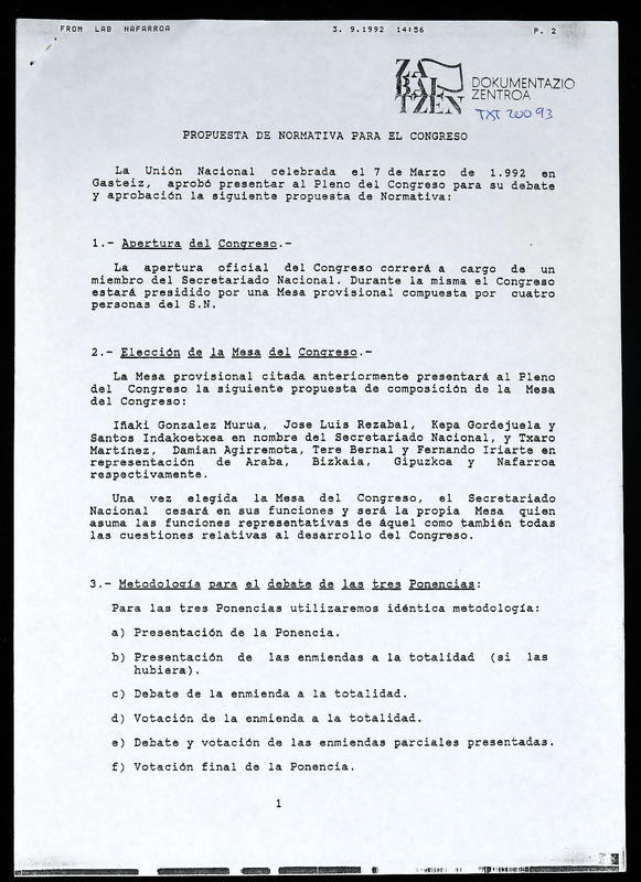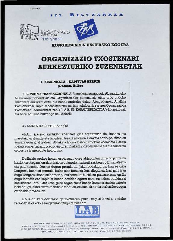 III BILTZARREA, Kongresuaren hasierako egoera: Organizazio txostenari aurkezturiko zuzenketak.