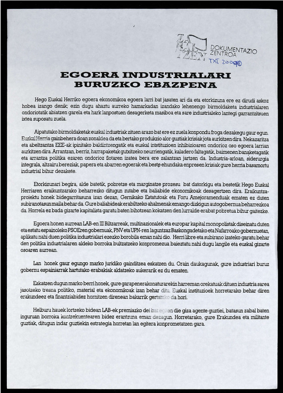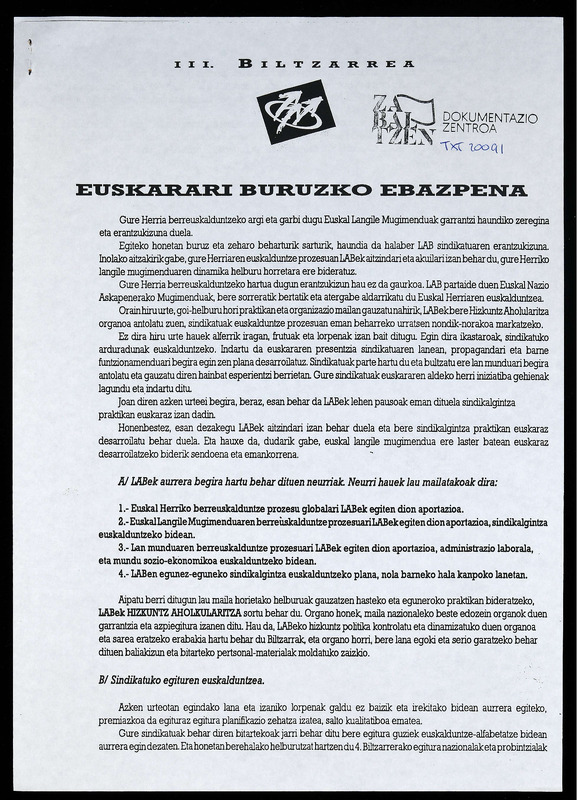 III BILTZARREA, Egoera industrialari buruzko Ebazpena