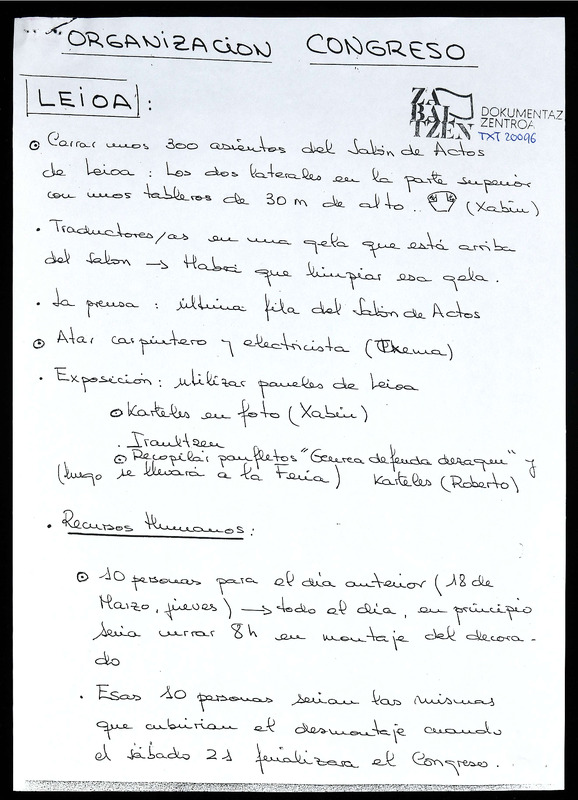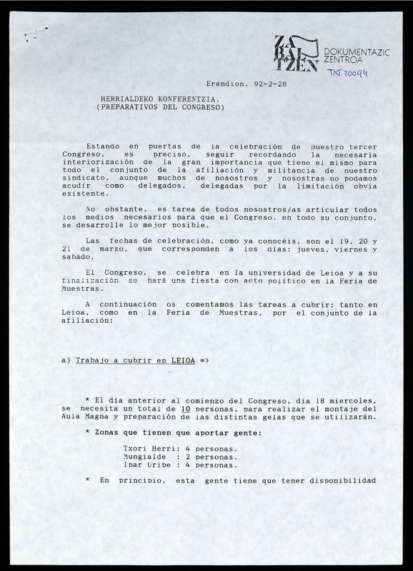 III BILTZARREA, Herrialdeko konferentzia (Preparativos de congreso)