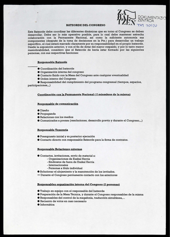 IV BILTZARRA, Batzorde del congreso