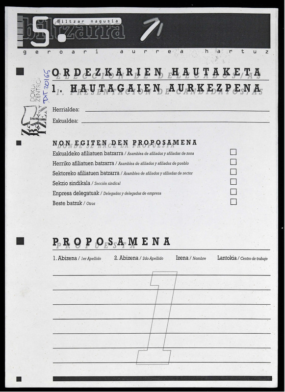 V BILTZAR NAGUSIA, Sindikatuko Izendegia