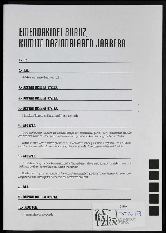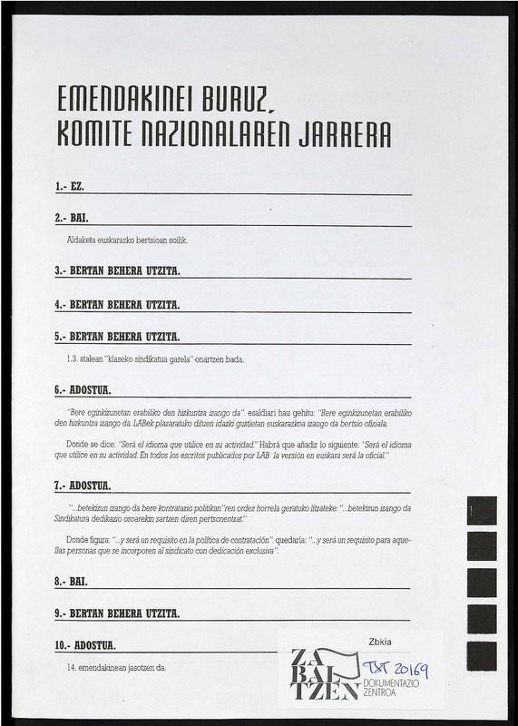 V BILTZAR NAGUSIA Emendakinei buruz komite nazionalaren jarrera