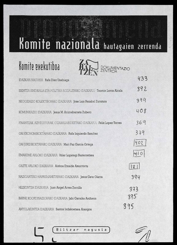 V BILTZAR NAGUSIA Hautaketa Komite Nazionala hautagaien zerrenda