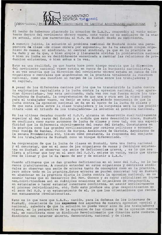 Langile Abertzaleen Batzordearen Oinarrizko Hastapenak - Principios Fundamentales de Langile Abertzaleen Batzordeak