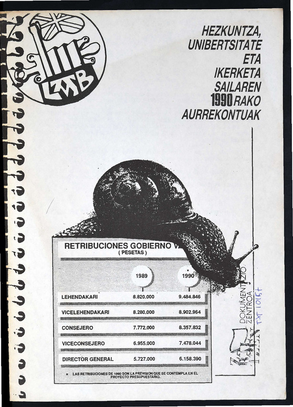 Hezkuntza unibertsitate eta ikerketa sailaren 1990rako aurrekontua