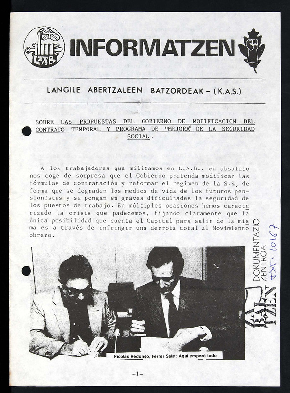 Informatzen. Sobre las propuestas del gobierno de modificación de contrato temporal y programa de mejora de la seguridad social.